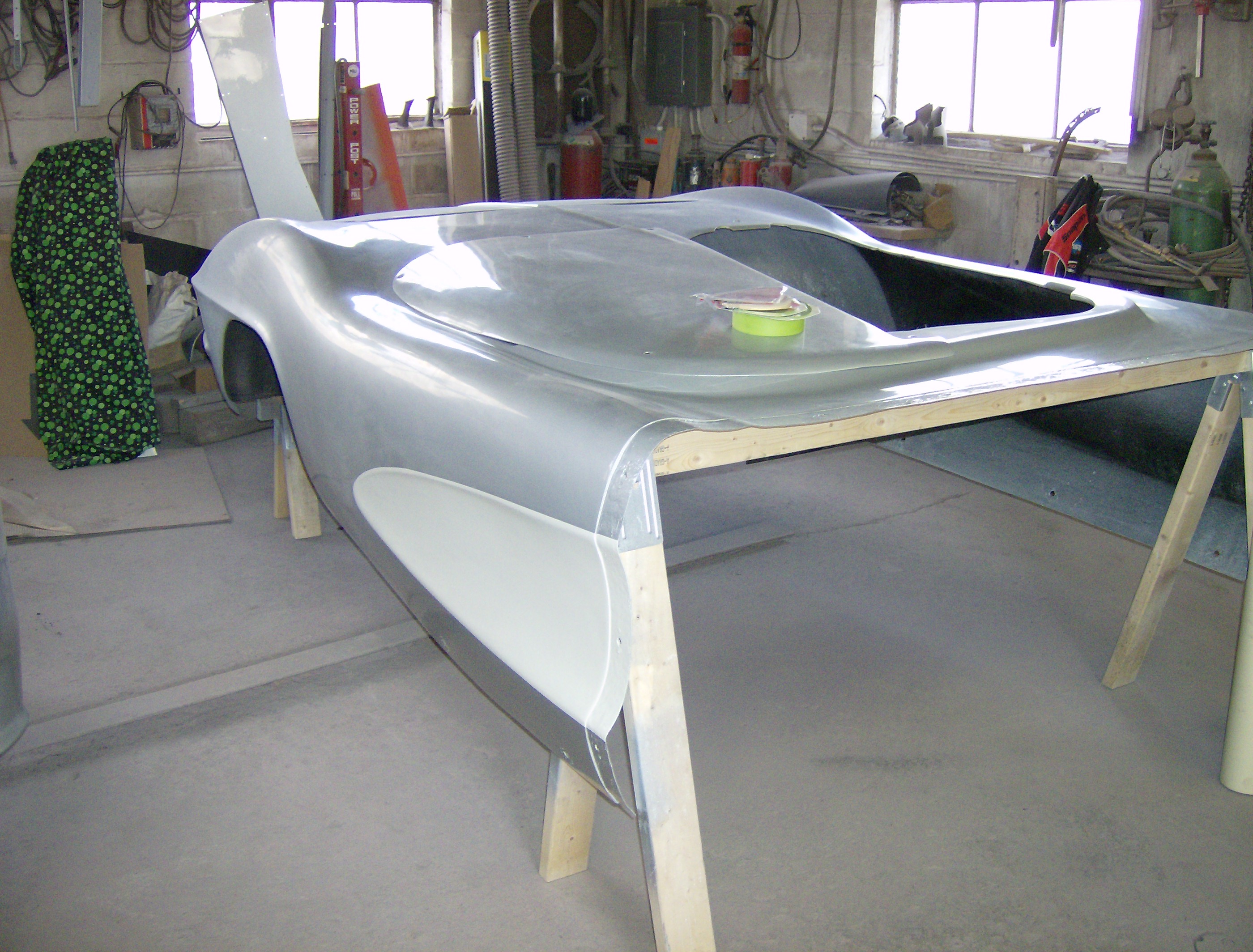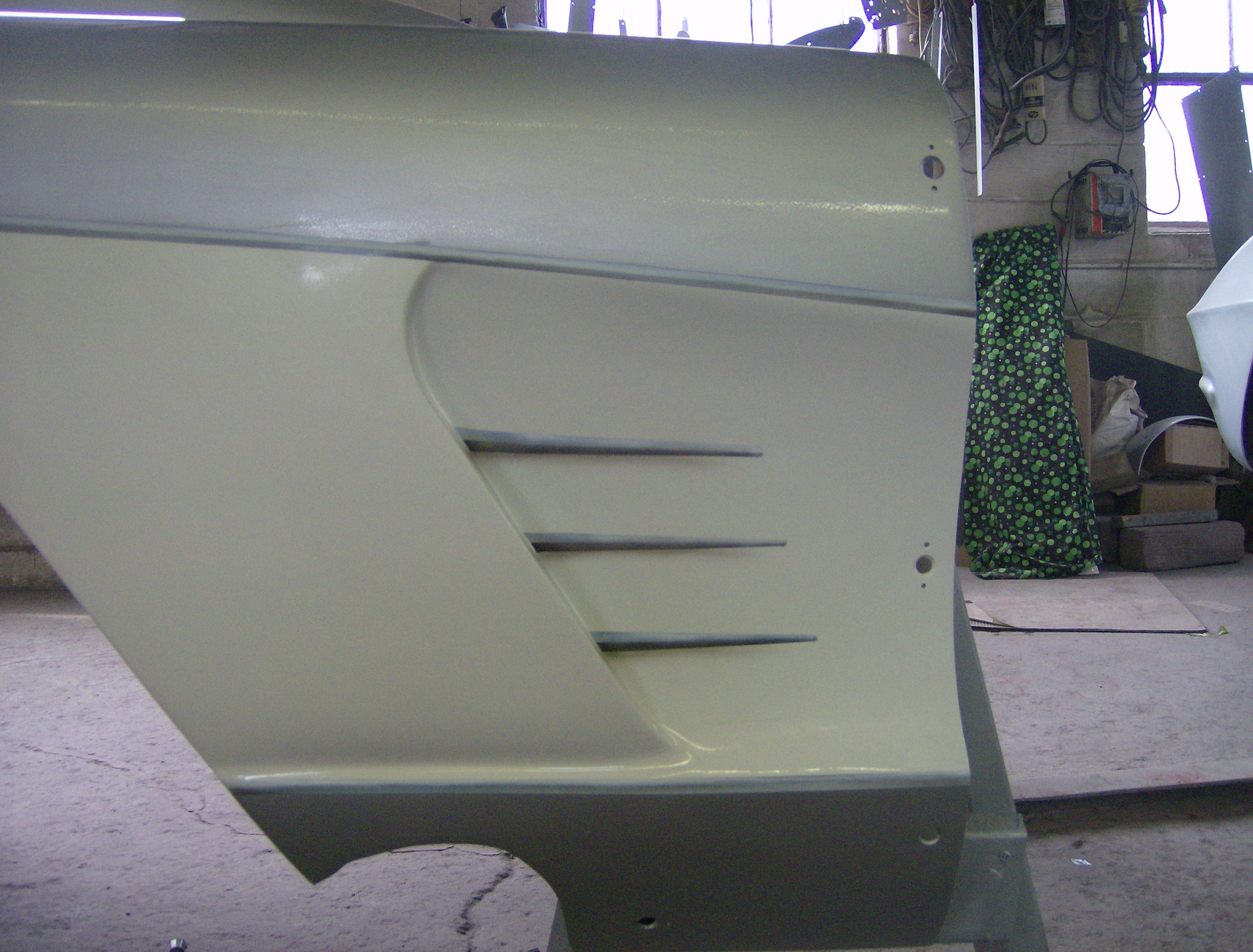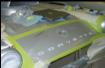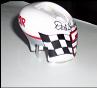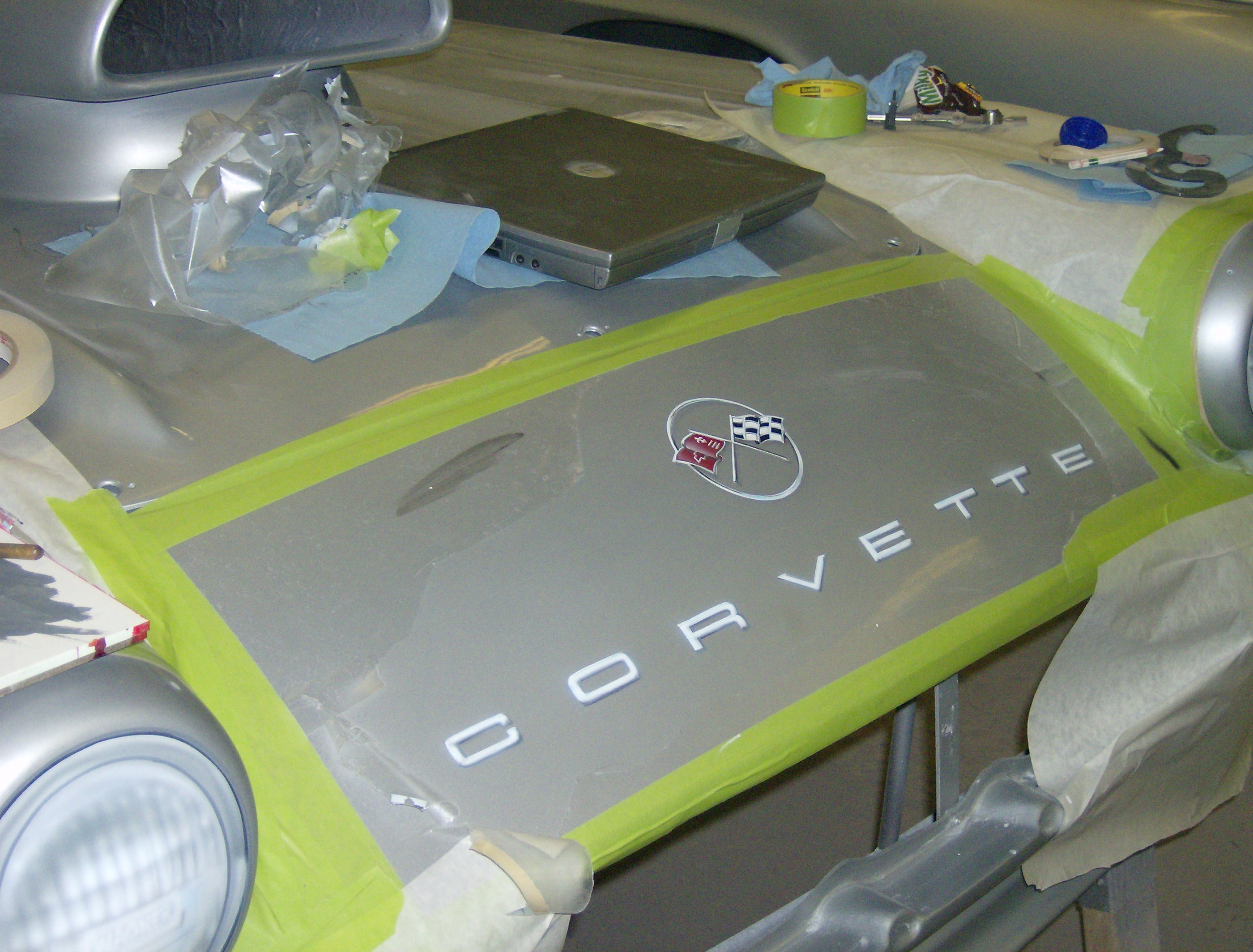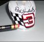 2 MG's racing. Painted on the hood of an MG. Pencil indicates the size of the art.