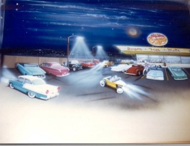 50's drive-in mural on the side of a motor home