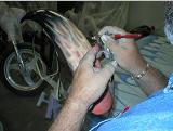 Whether you are an individual, a major repair facility or an insurance company, often times finding someone to repair damages to custom paint can be difficult at best. Here at QuickDraw Designs we can help with most repair situations. From a simple pinstripe relacement on a fender that someone across the country did 2 years at a bike show to factory color matching on your new bike and even a radical airbrush and full out custom scheme on your chopper, we can put your ride back to pre-damaged condition. Regarding your repair, we use Valspar, House of Kolor and 3M products exclusivly and all reapirs come with a written warrentee. And depending on the nature of your damage we have a specially designed frame machine for motorcycles only so, when appropriate, we can repair frame damage(some restrictions apply). If you are an Insurance Co. or repair facility I have 30+ years as a body shop owner, manager, and adjuster so I am familiar with most estimating programs; i.e. Mitchell, ADP, CCC and others, and I can work with most situations. For more information or to schedule an appointment, call me @ 518-235-5352, and I will be happy to discuss your needs. Thank you, Jay" QuickDraw" Griffen.